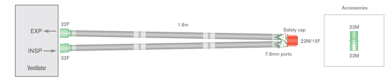 Suas conexões são do tipo universal para tubos traquéias. Utilizados para o transporte de gases em pacientes submetidos à ventilação mecânica ou em pacientes submetidos a cirurgias, onde seja necessária a manutenção da respiração por longo período de tempo.