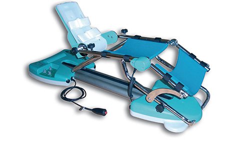 Esse é um modelo simplificado, todo o controle está na base da máquina. A angulação é controlada a cada 5 graus, o paciente manuseia apenas com um botão liga e desliga.