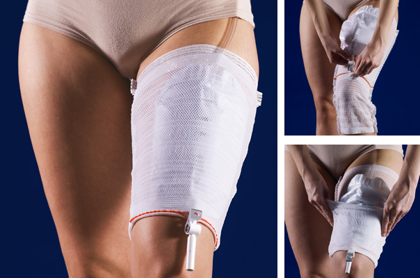 - Retenção segura para bolsa de perna. Sustenta até 750 ml.